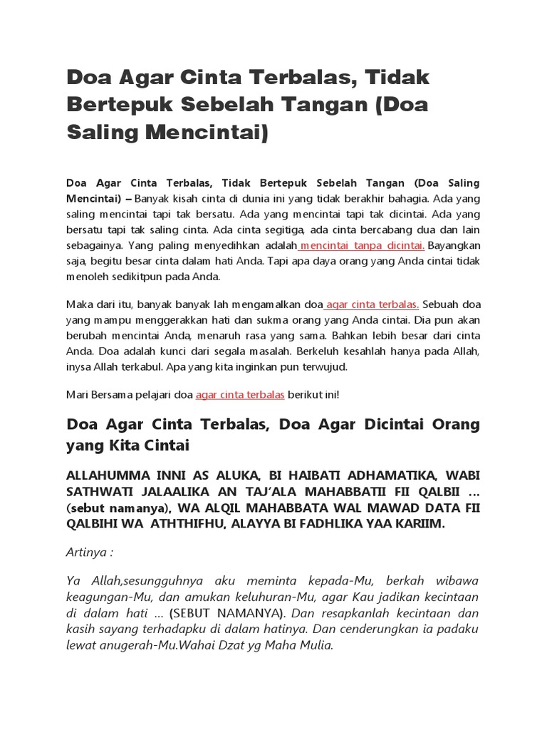 Doa Agar Orang Yang Disukai Dan Disayangi Mencintai Kita from riaukarya.com Allahumma inni as aluka, bi haibati adhamatika, wabi sathwati jalaalika an taj'ala mahabbatii fii qalbii … Jul 25, 2017 · doa agar orang yang kita cintai mencintai kita inilah doa agar seseorang mengingat kita, merindui dan mencintai kita. Berdoa dan memohon kepada allah supaya kita diberikan kemudahan untuk dicintai seseorang hukumnya diperbolehkan termasuk seseorang bisa dijadikan jodoh itu boleh menurut tuntunan agama islam. Setiap manusia pastinya menginginkan rasa nyaman dan bahagia dalam menjalani kehidupan dan salah satu contoh kebahagiaan sederhana adalah dicintai seseorang yang kita cintai. (doa agar orangtua merestui hubungan kita ) bagi anda seorang… More images for doa agar orang yang kita cintai mencintai kita jarak jauh » 22 hours ago · rasa rindu sendiri timbul akibat waktu perjumpaan yang terbatas atau bahkan jarang bertemu. Dicintai seseorang tidak hanya bisa membuat anda menjadi lebih bahagia, tetapi juga ada dampak positif lainnya dalam kehidupan anda.
