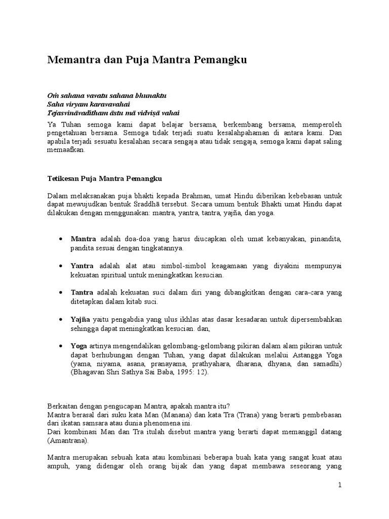 Sep 07, 2018 · *puja prenamya. Om pranamya sang linggam dewa lingga maheswara, sarwa dewata dewati dewanam tasma lingga ya we namah. Jun 20, 2015 · ilekitha swadarmaning pemangku : Jaya ang ang ang ah; More images for puja mantra melaspas » Puja berkaitan dengan caru lain dan melaspas bangunan. Choose from a wide range of properties which booking.com offers. Puja di bawah ini berkaitan dengan caru juga, dilanjutkan dengan tata upacara dalam membangun rumah. Om um rah phat astraya namah om atma tattwa atma suddha mam swaha om om ksama sampurna ya namah swaha om sri pasupataye um phat om sreyam bhawantu om sukham bhawantu om purnam bhawantu 3 b. Choose from a wide range of properties which booking.com offers. Om siwa sampurna yang namah. Om ung wisnu sandyanamu namah. Giri pati stawa kahyangan stawa siwa stawa ngastawa ida bhatara sane malinggih ring pura kinucap.